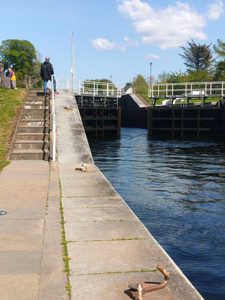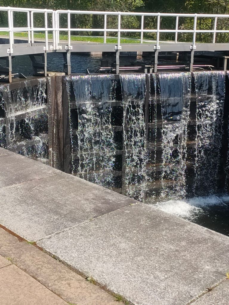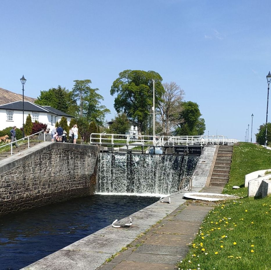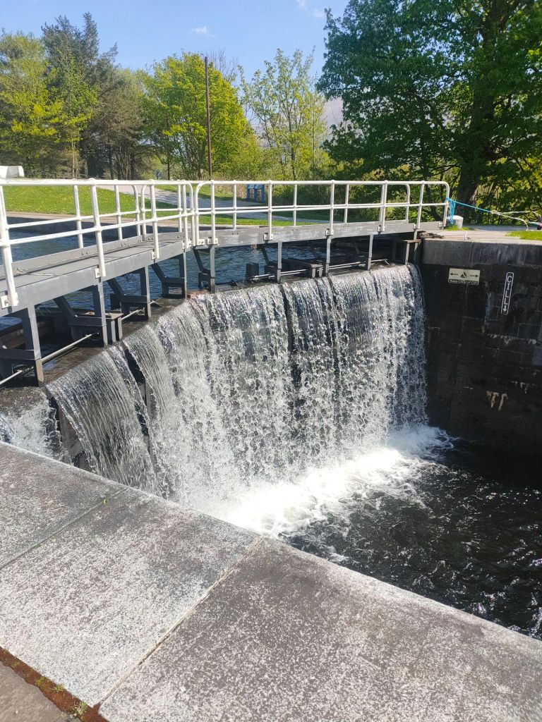 After waking up we head over to granny Kay’s for breakfast. We head to fort William we forgot to look out for a cool landslide. We then meet Elaine at Morrison’s and take a walk down High Street. Anyway we then try to go to Inverlochy castle which is pretty much a fancy hotel not what dad was expecting:( So we then go to Neptune’s staircase and no it’s not a staircase, it’s actually a canal but connects a high part of a canal to a low part with gates that act like stairs. When when we arrive there’s a sail boat going through and it’s going down the canal. Read the caption to see how it works.