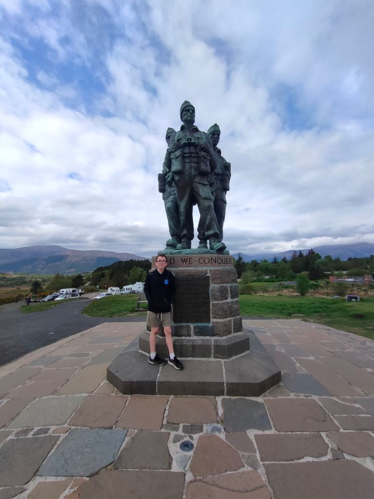 We then went to the commando memorial which is a monument that celebrates the elite commando units that fought in world war 2. The memorial was built near Achnacarry castle which is where the commando trained. It had an amazing view Mum said that usually you can see Ben nevis the tallest mountain in Scotland. which we couldn’t see because it was sitting in the clouds well not actually sitting in it. we then had to leave to go home.